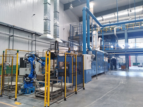 ▲機(jī)械手收板(駱駝新疆蓄電池) 該項目是集團(tuán)公司聚焦“雙碳”目標(biāo)與產(chǎn)業(yè)升級需求啟動的重點(diǎn)攻關(guān)項目,是為鉛酸蓄電池生產(chǎn)企業(yè)提供綠色節(jié)能生產(chǎn)車間的設(shè)計及關(guān)鍵核心裝備制造。項目團(tuán)隊通過工藝流程再造,構(gòu)建起“綠色工藝+智能裝備+數(shù)字管控”的全鏈條創(chuàng)新體系,從源頭減少鉛消耗和三廢排放,減少工人數(shù)量,提高了單位面積產(chǎn)出比,提高了生產(chǎn)效率,系統(tǒng)性破解了傳統(tǒng)鉛蓄電池生產(chǎn)中鉛耗高、污染重、效率低的行業(yè)痛點(diǎn),最終實(shí)現(xiàn)鉛酸蓄電池的綠色生產(chǎn)。 目前,該項目研發(fā)的工藝技術(shù)和設(shè)備已在駱駝股份、風(fēng)帆股份、超威集團(tuán)、天能股份、理士國際等知名鉛酸蓄電池生產(chǎn)企業(yè)成功應(yīng)用,使企業(yè)的生產(chǎn)效率大幅提升,人工成本、生產(chǎn)能耗和物耗大幅降低,鉛、酸污染物排放指標(biāo)優(yōu)于國家標(biāo)準(zhǔn),資源和能源消耗指標(biāo)、污染物控制指標(biāo)均優(yōu)于國家清潔生產(chǎn)一級基準(zhǔn)值,經(jīng)濟(jì)效益、環(huán)境效益和社會效益顯著。