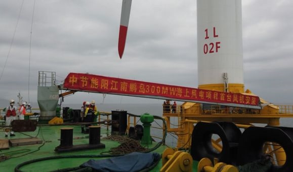 中國節能陽江海上風電項目首臺5.5兆瓦風機吊裝成功 |