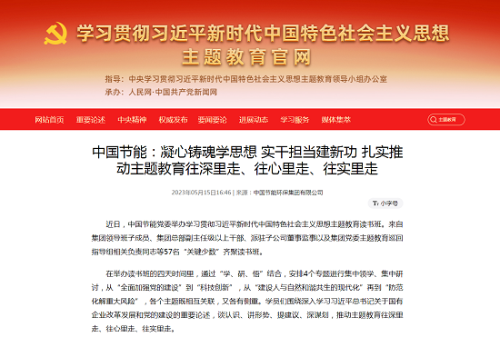 學習貫徹習近平新時代中國特色社會主義思想主題教育開展以來,中國節能深入學習領會習近平總書記重要講話精神,聚焦主題教育總要求和目標任務,堅持把主題教育同做強主責主業、建設人與自然和諧共生的中國式現代化緊密結合、一體謀劃,以強化理論學習指導發展實踐,以深化調查研究推動解決發展難題,高質量開展主題教育,為企業發展凝心聚力。